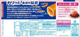 Farine de riz (riz non gluant (Japon)), amidon, cacahuètes (cacahuètes, huile végétale, sel), sauce soja, assaisonnement prune et shiso, sucre, assaisonnement extrait de fruits de mer, hydrolysat de protéines, extrait de varech, chair/assaisonnement de prune séchée ( glutamate monosodique) etc.), amidon transformé, acidulant, sorbitol, arôme, colorant (caramel, colorant paprika, colorant violet maïs), édulcorant (sucralose, néotame), extrait d'épice, émulsifiant