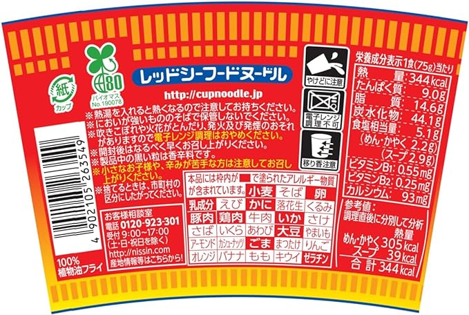 Nouilles en coupe Nissin aux fruits de mer rouges (74 g)