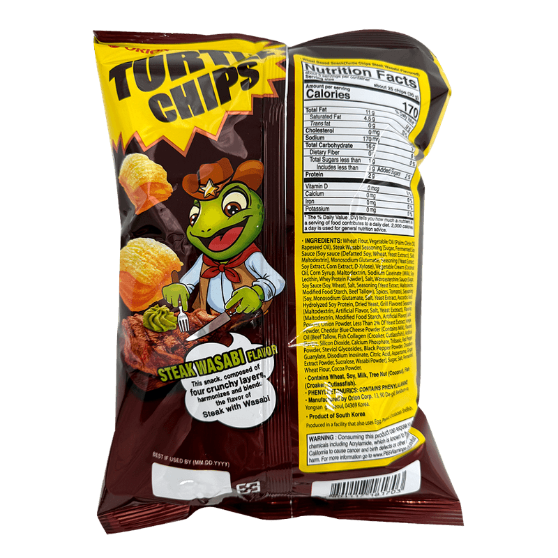 Cette collation, composée de quatre couches croustillantes, harmonise et mélange la saveur du steak et celle du wasabi.
