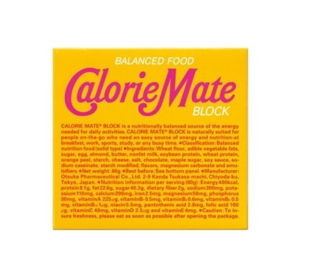 Calorie Mate est un aliment nutritionnel bien équilibré qui vous permet de consommer facilement les cinq principaux nutriments (protéines, graisses, sucre, vitamines et minéraux) dont votre corps a besoin.