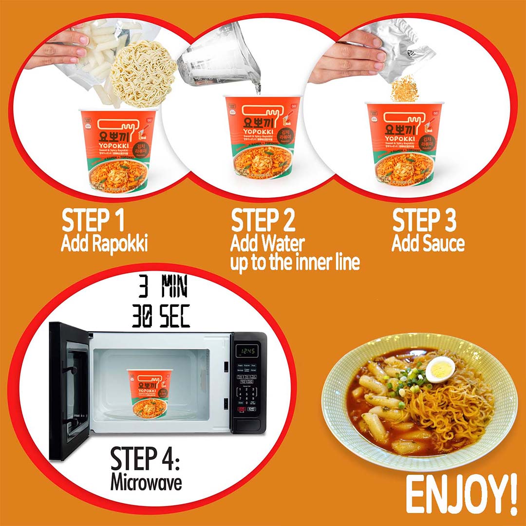 Il s’agit d’un rabokki instantané sous forme de tasse qui se cuit facilement au four à micro-ondes. C'est un produit bien équilibré au goût riche de topokki (gâteau de riz) et de ramen sari avec le goût savoureux du kimchi.