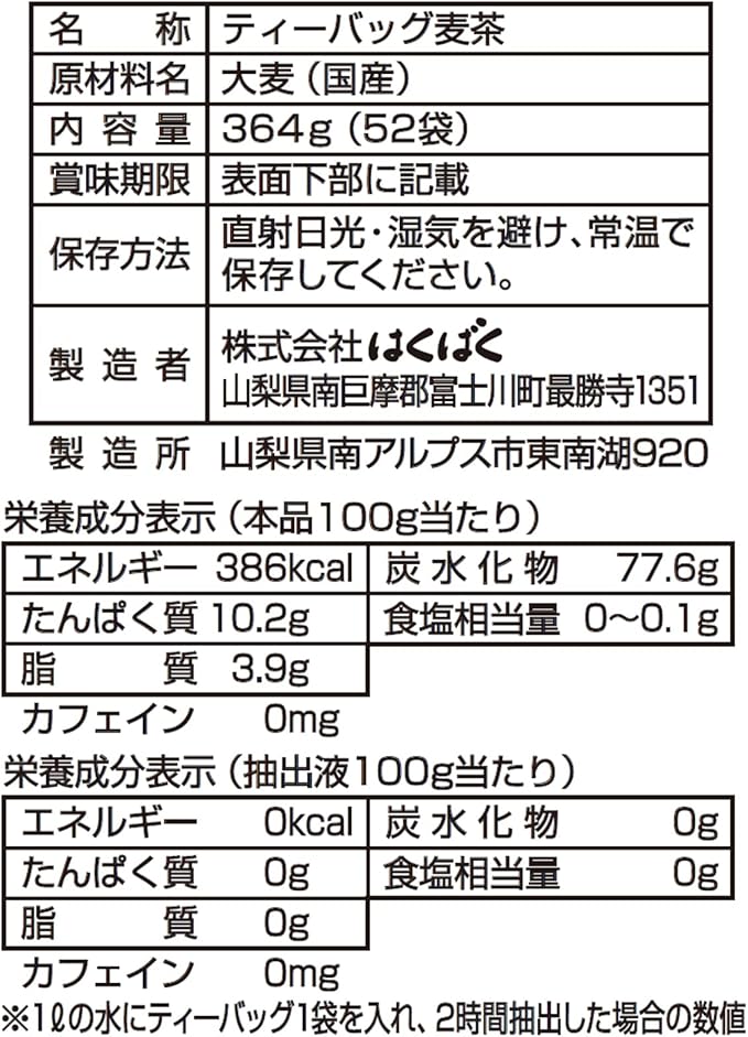 国産大麦を100%使用。低温でじっくり焙煎することで、豊かな香りをお楽しみいただけます。さらに、焙煎度合いの異なる2種類の大麦をブレンドすることで、深いコクと風味を実現しました。麦茶は穀物である大麦から作られており、コーヒー、紅茶、緑茶とは異なり、カフェインは含まれていません。