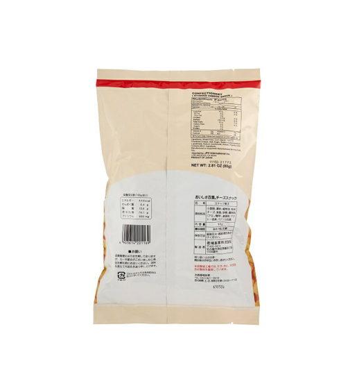 小麦粉(国内製造)、澱粉、植物油脂、粉チーズ、食塩、砂糖、調味料(グルタミン酸ナトリウム等)、膨張剤、アナトー色素、パプリカ色素