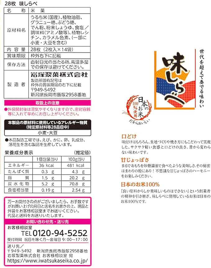 うるち米(国産)、植物油、グラニュー糖、ブドウ糖、でん粉、粉末醤油、食塩/調味料(グルタミン酸ナトリウム等)、植物レシチン、カラメル色素