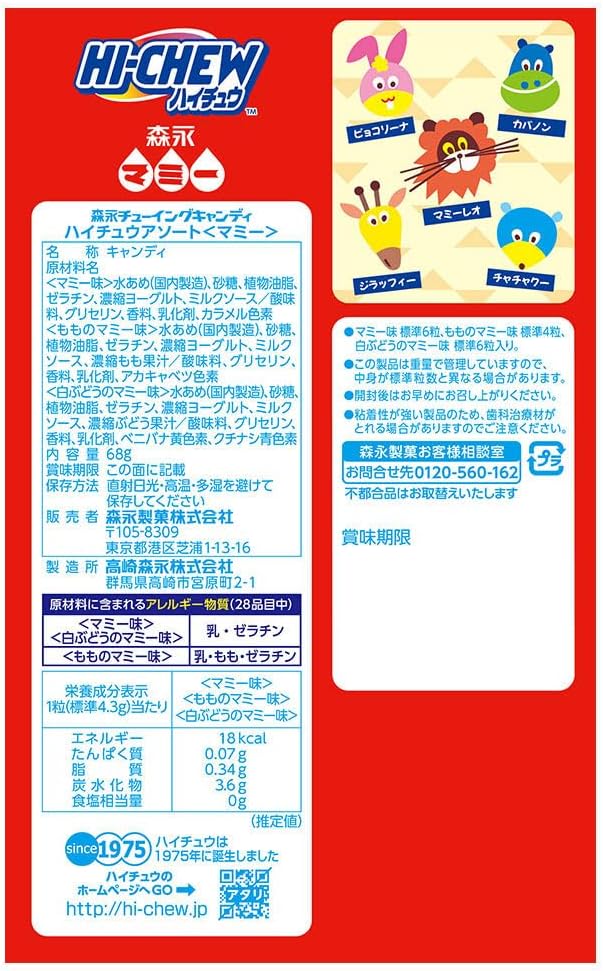 水飴(国内製造)、砂糖、植物油脂、ゼラチン、濃縮ヨーグルト、ミルクソース/酸味料、グリセリン、香料、乳化剤、カラメル色素