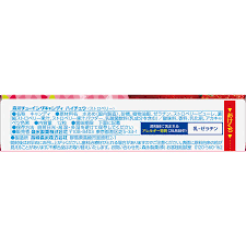 水飴(国内製造)、砂糖、植物油脂、ゼラチン、濃縮いちご果汁、乳酸菌ドリンク(乳成分を含む)/酸味料、グリセリン、香料、乳化剤、紫キャベツ色素