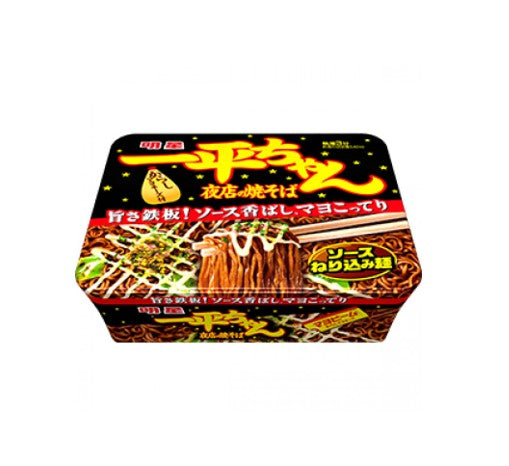 焼きそば(小麦粉(国内製造)、植物油脂、食塩、ソース、砂糖)、ソース(ソース、マスタードマヨネーズ、砂糖、香味油、植物油脂、食塩、たん白加水分解物、加工ソース、風味調味料、ポークエキス、香辛料、醸造酢)、かやく(キャベツ)、ふりかけ(マヨネーズフレーク、香辛料、あおさ、紅生姜、風味調味料)/カラメル色素、調味料(グルタミン酸ナトリウム等)、炭酸カルシウム、食塩水、酸味料原材料、乳化剤、香料、香辛料抽出物、酸化防止剤(ビタミンE)、炭酸マグネシウム、カロチノイド色素、ビタミンB2、ビタミンB1