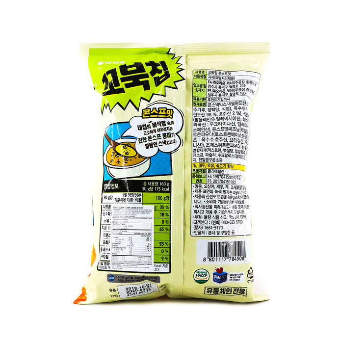 コーンフラワー(コーンスナックミックス、トウモロコシ粉、植物油脂、重曹、スイートコーンパウダー、食塩)、植物油脂(パームオレイン油、ひまわり油)、コーンスープ調味料(砂糖、ローストコーン風味パウダー、スイートコーンパウダー、食塩) )