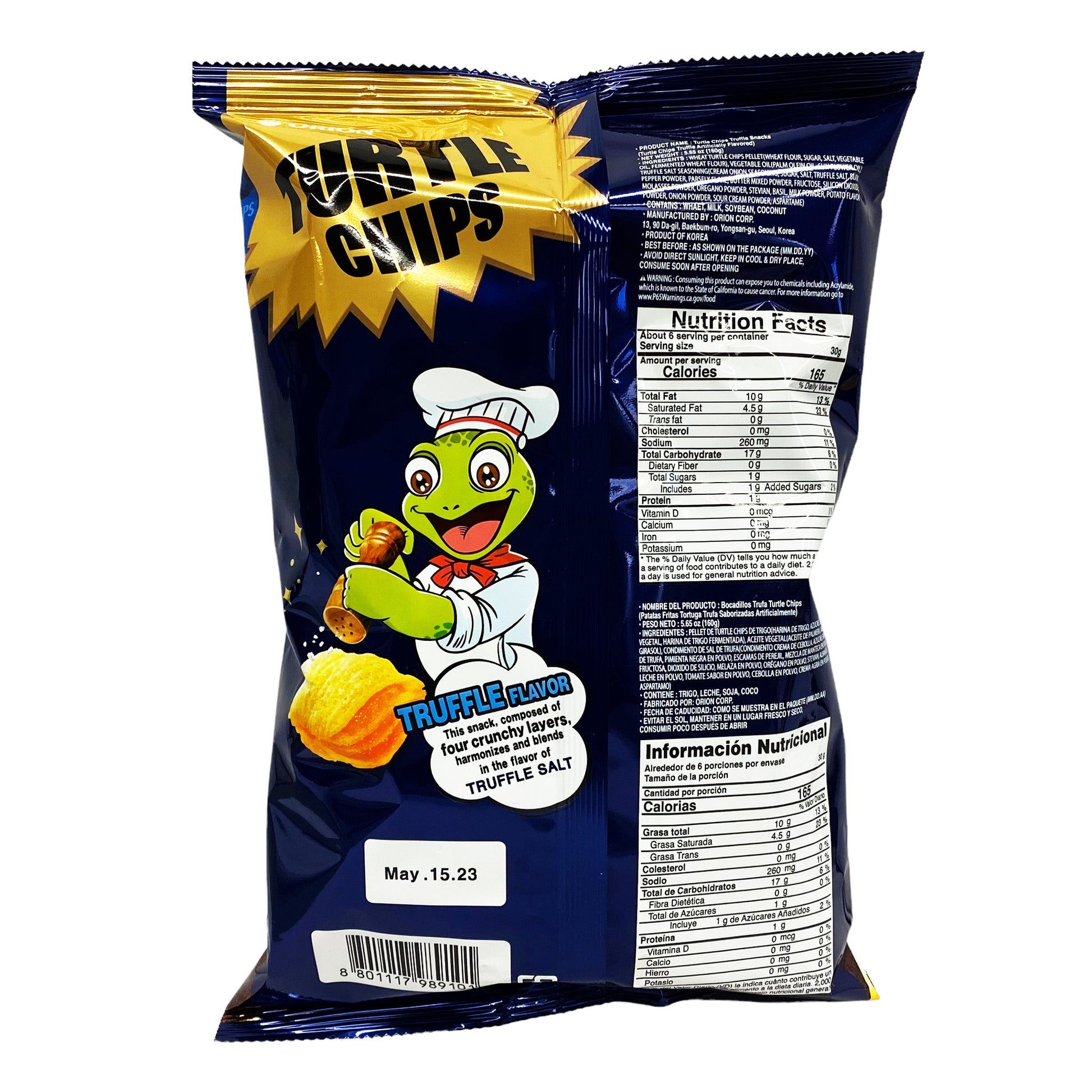 小麦カメチップスペレット(小麦粉、砂糖、食塩、植物油脂、発酵小麦粉)、植物油脂、トリュフ塩シーズニングクリーム、オニオンシーズニング、砂糖、食塩、トリュフ塩、黒胡椒粉末、パセリフレーク、バター混合粉末、果糖、二酸化ケイ素、糖蜜パウダー、オレガノパウダー、ステビアン、バジル、ミルクパウダー、ポテトフレーバーパウダー、オニオンパウダー、サワークリームパウダー、アスパルテーム)