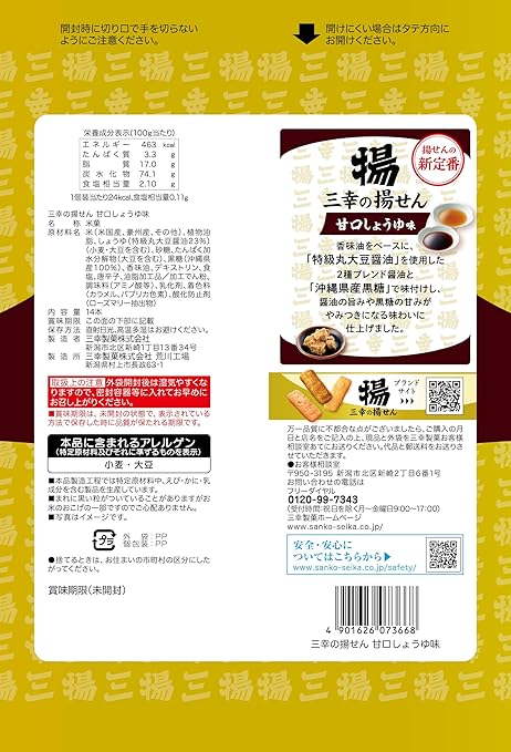 サンコー 揚げせんべい 甘醤油味(14枚)