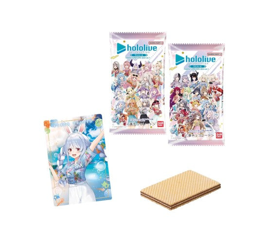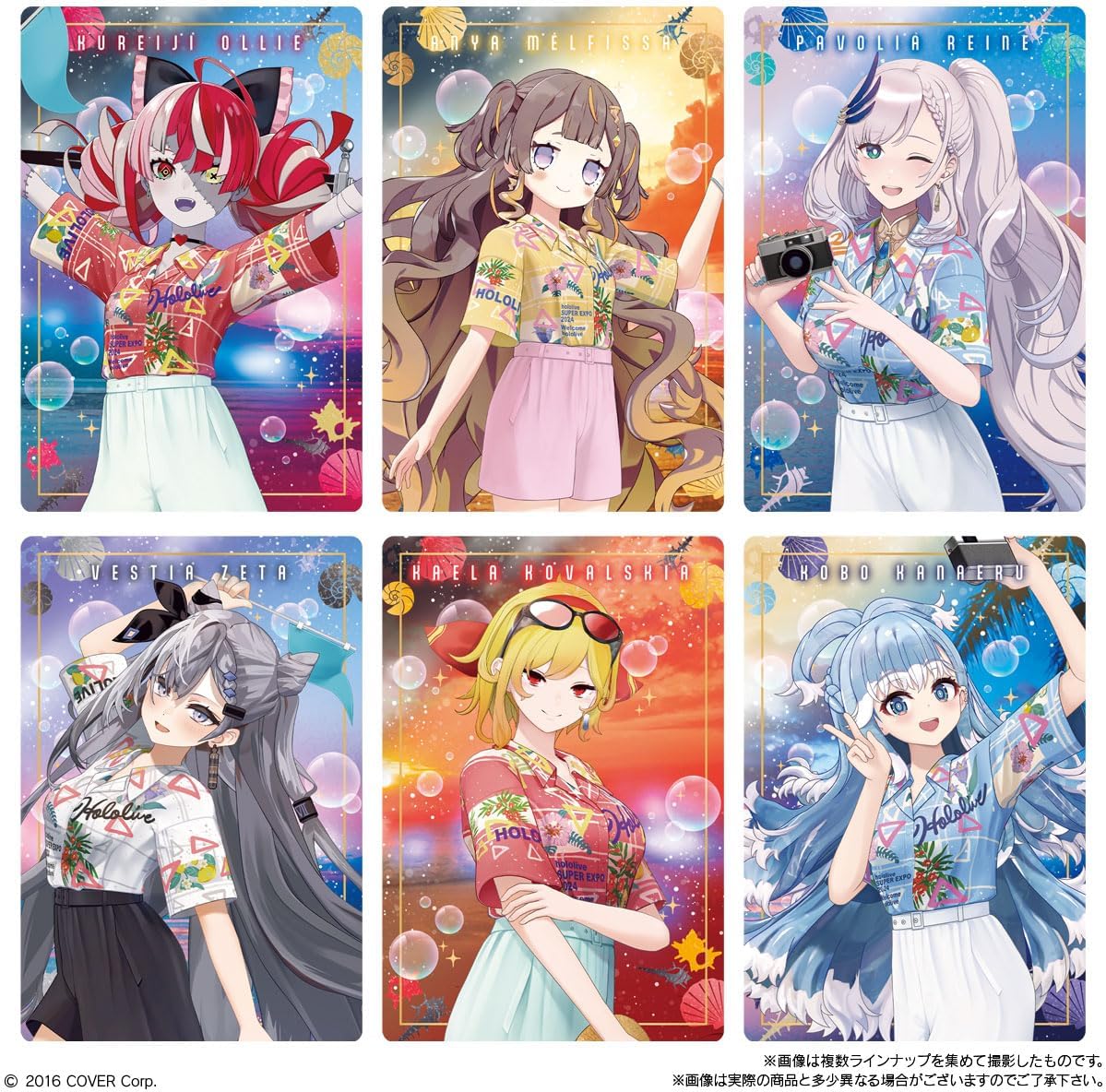 Collect all 37 types of Hololive Production metallic card while having a delicious strawberry wafer.