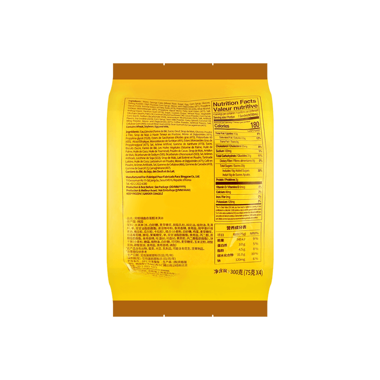 Water, Sponge Cake (Wheat Flour, Sugar, Egg, Corn Syrup, Glucose, Baking Powder, High Fructose Corn Syrup, Mono- and Diglycerides (471), Propylene Glycol (1520), Sucrose Esters of Fatty Acids (473), Polysorbate 60 (435), Ethyl Alcohol, Sorbitan Monostearate (491), Propylene Glycol Mono Fatty Acid Esters (477), Salt, Artificial Flavor, Xanthan Gum (415)), Sugar, Cookies (Sugar, Wheat Flour, Vegetable Oils (Palm Stearin, Palm Oil, Coconut Oil and Sunflower Oil), Cacao Powder, Corn Syrup, Com Starch, Sodium Bicarbonate (500), Ammonium Bicarbonate (503), Salt, Artificial Flavors, Soy Lecithin (322)), Corn Syrup, Skim Milk Powder, Dairy Spread, Coconut Oil, Whey Powder, Mono- and Diglycerides (471), Coffee Powder, Artificial Flavors, Salt, Cellulose Gum (466), Locust Bean Gum (410), Guar Gum (412), Carrageenan (407).