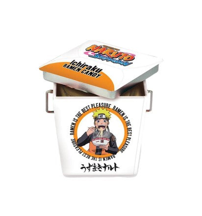 Ichiraku's favorite ramen, now in a candy form! One ounce of fruit punch flavored candy ramen "noodles" are a fun collectible packaged in a takeout shaped tin