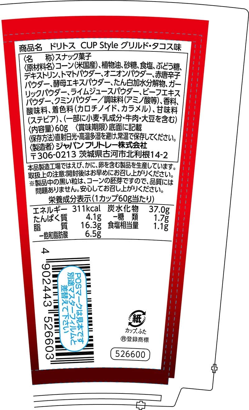 The three-dimensional dough shape gives it a multi-layered texture, and the flavor is more like a charcoal fire than a regular taco. Enjoy your time with some Doritos, which are easy to carry around in a cup.