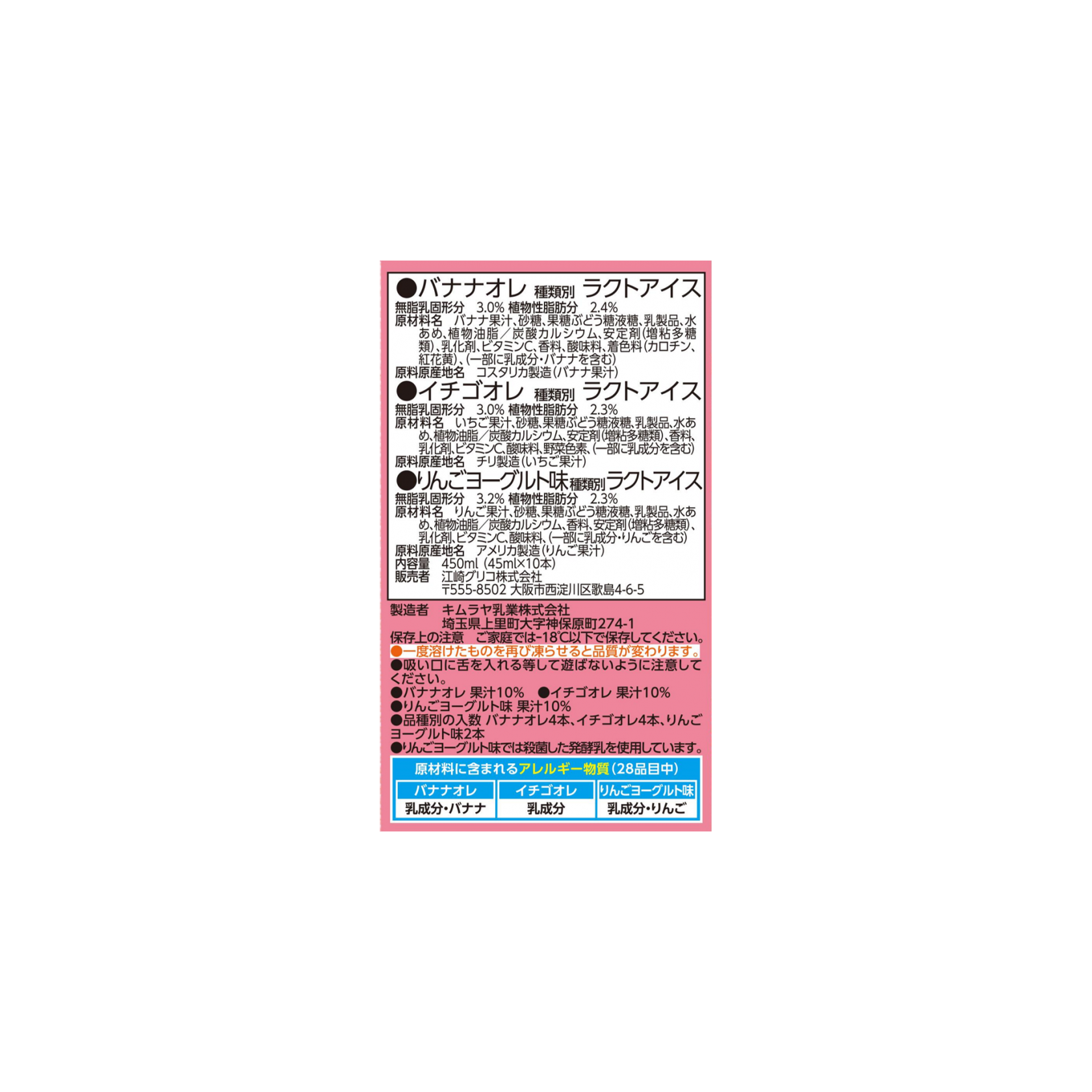 Banana juice, sugar, high fructose glucose liquid sugar, dairy products, starch syrup, vegetable fats and oils/calcium carbonate, stabilizer (polysaccharide thickener), emulsifier, vitamin C, flavoring, acidulant, coloring (carotene, safflower yellow)