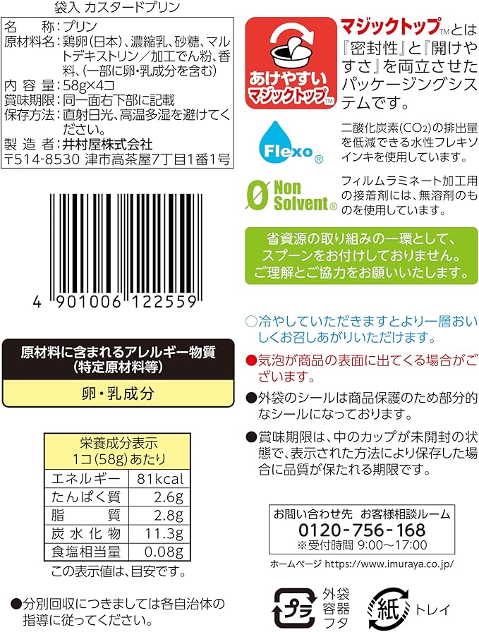 Eggs (Japan), concentrated milk, sugar, maltodextrin/modified starch, flavoring
