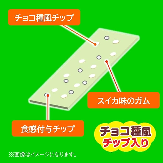 The chewing gum that looks just like a melon bar is back! It contains chocolate seed-like chips that are fun to look at, taste, and feel!