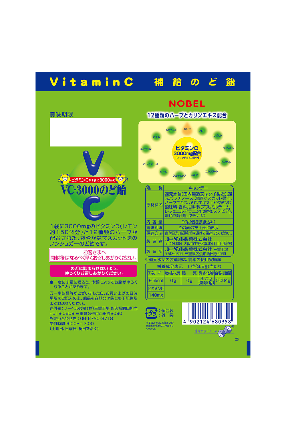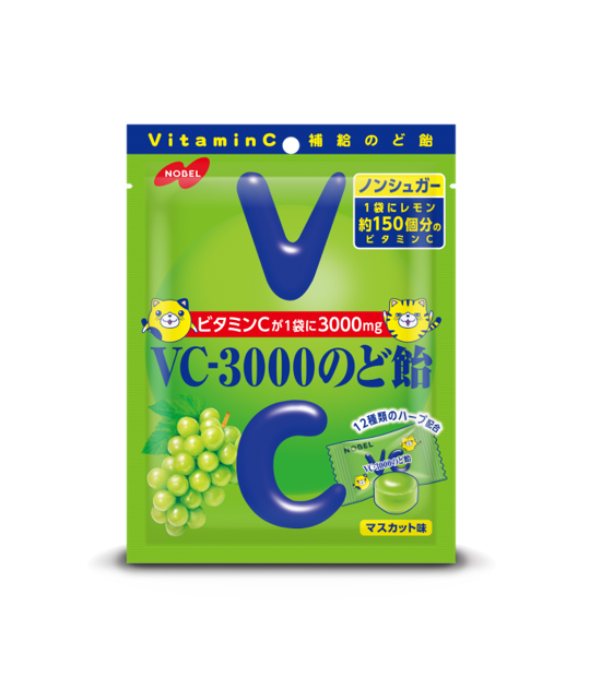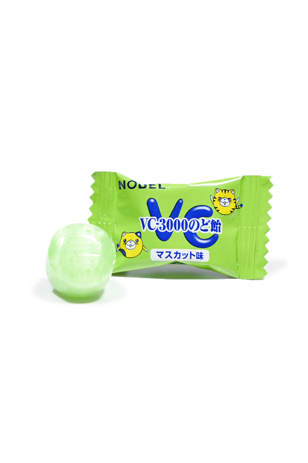 The product's feature as a delicious throat lozenge that provides vitamin C with muscat flavoured.