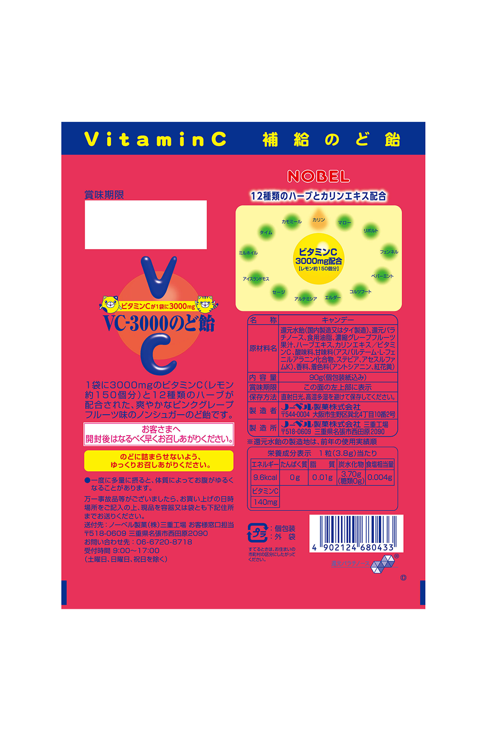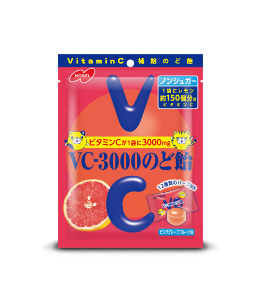 The product's feature as a delicious throat lozenge that provides vitamin C with pink grapefruit flavoured.