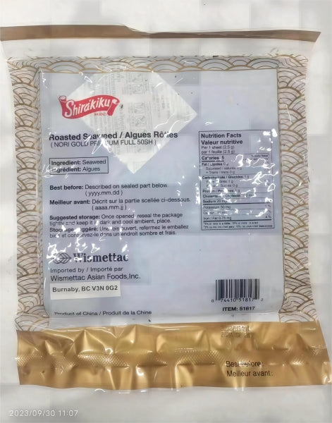 Shirakiku Yaki Sushi Nori Premium Gold (50 Sheet/125G)