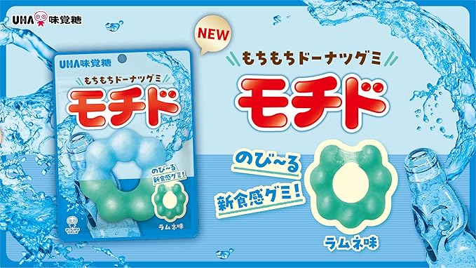 Donut-shaped gummy candies with a new chewy and stretchy texture with ramune soda flavour.